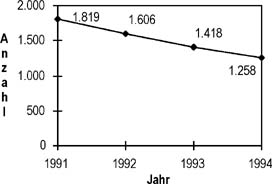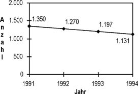 Bild 2-4: Anzahl der Unternehmen der deutschen Textilindustrie (Statistisches Bundesamt 2000a)