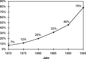 Bild 2-8: Entwicklung der Auslandsfertigung ausgewählter Unternehmen der Bekleidungsfertigung (Krantz, Peffekoven 1997)