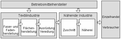Die gesamte Textil- und Bekleidungsbranche einschließlich der Betriebsmittelhersteller, des Handels und der Verbraucher wird als "Textile Kette" bezeichnet (Bild 2-1).