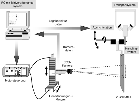 Bild 8-3: Lösungsansatz für eine Positionserkennung mit vertikal angeordnetem Zuschnitteil (Feldhoff 1999)
